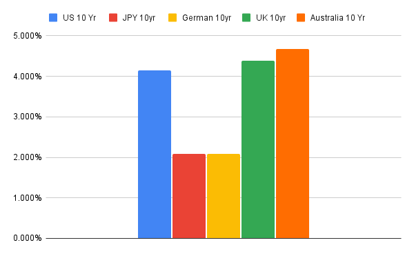 - Australia 10-year: 4.676% (highest in the set)