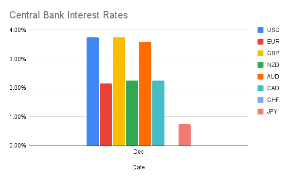 Interest-rate differentials remain one of the most reliable drivers of medium- to long-term FX trends. As of late December: